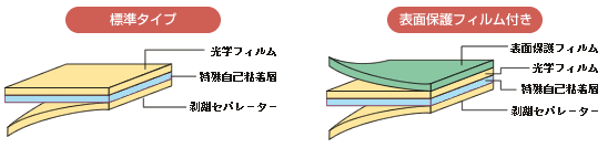 - 標準はポリエステルフィルムを基材にしていますので、取扱いやすく加工寸法安定性に優れています。