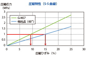 上記圧縮特性曲線は静的せん断弾性率を用いて計算で求めたものであり、実測値ではありません。